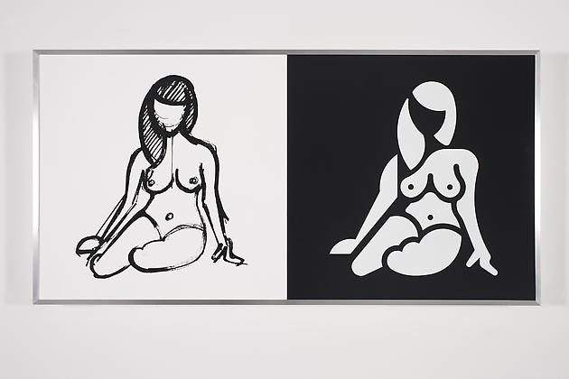 McGinness’ working method has always been a balance between reduction and construction. With the Women works, he begins the drawing process for each model with several figure sketches from life. These sketches are then processed over several stages during which the forms are transformed into various iconic drawings. This process of simplification is a purely aesthetic experience for the artist, and one that he uses to locate his final figures. For McGinness, this drawing process is an exploration to discover what he finds inherently sensual in his models.